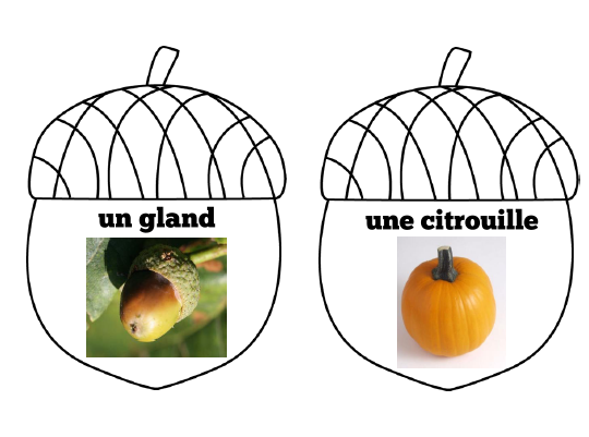 My kids know the game "Bug in a rug" really well from their English teacher, so I like to use it in French. I made this game with the same pictures we have been using to learn our fall words.